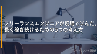 20代でフリーランスに挑戦するエンジニア向けに、最初の案件獲得から単価アップまでの道筋を、フリーランス歴10年のインフラ系エンジニアが実体験をもとに解説。実績づくり・スキル選択・エージェント活用・失敗からの学び方をわかりやすく紹介します。